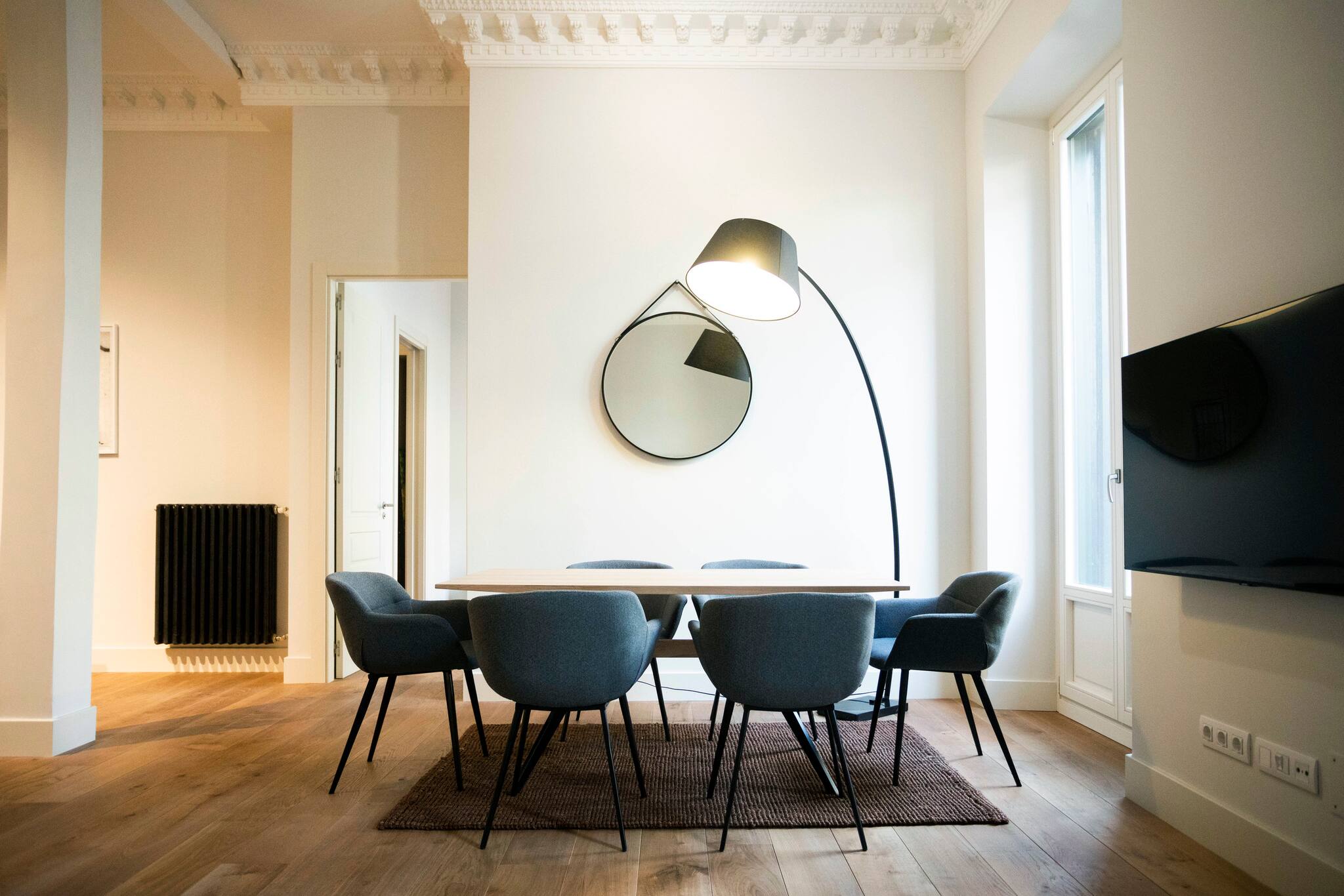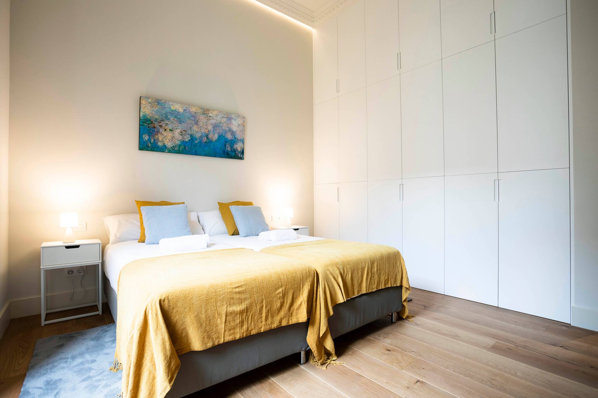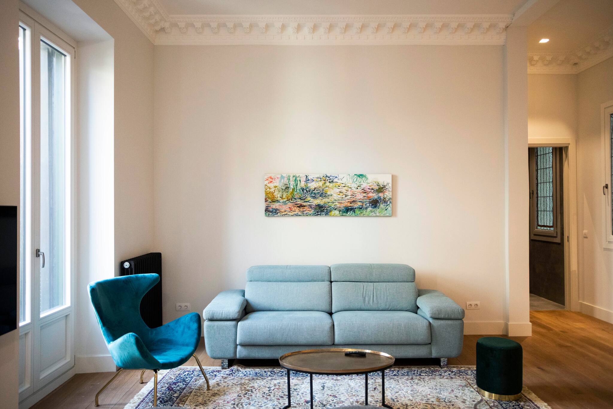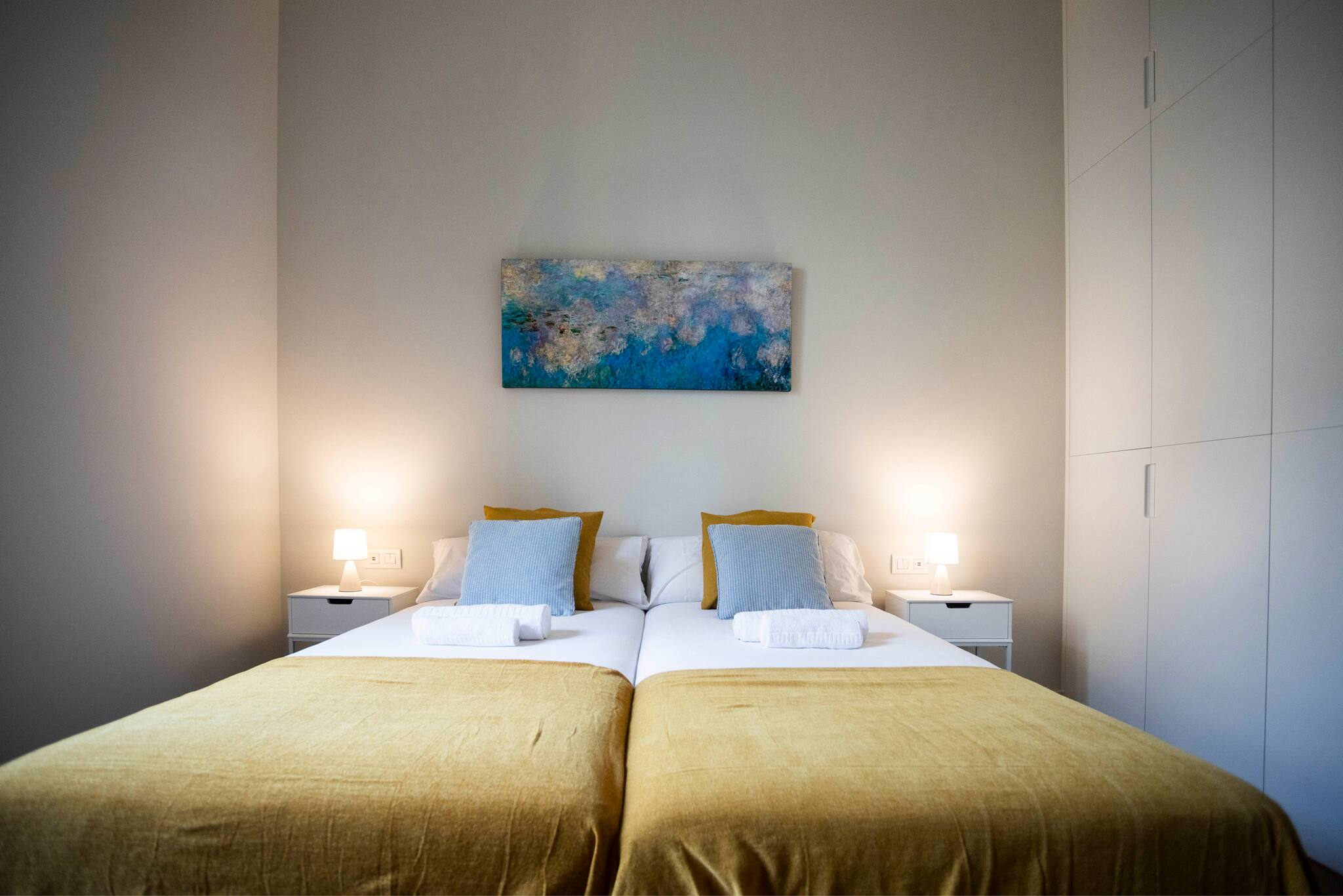 At the apartment, you will find a sunny and modern living room that guides you to a couple of double cosy rooms. There is also a dining area with a capacity to host 4 people and also a kitchen provided with everything you need for you to feel at home from the very first moment. The apartment is completely equipped with a TV , a washing machine, flat iron and its table, waterboiler, juice squeezer, toaster, Nespresso coffee machine... and of course, high speed WIFI and cable television.